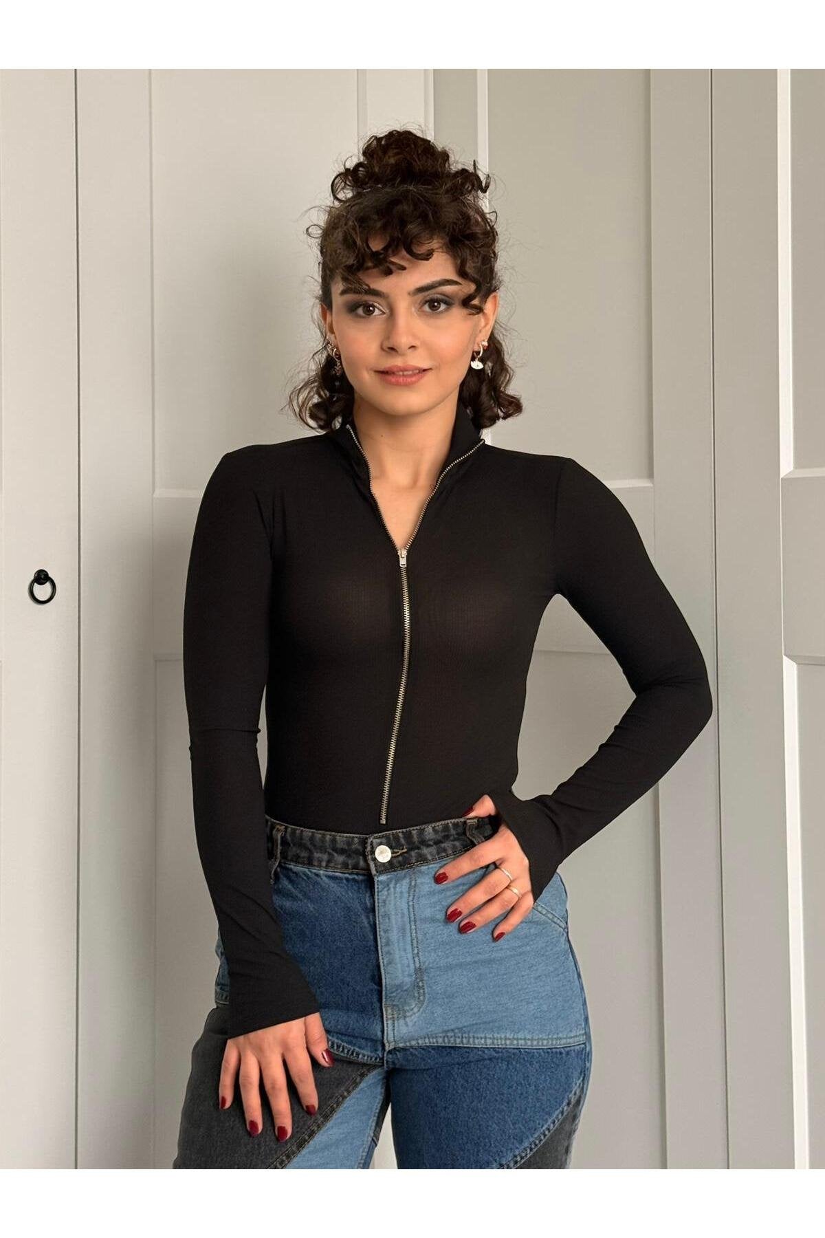 32445 Aksesuar Detaylı Basic T-Shirt-Siyah