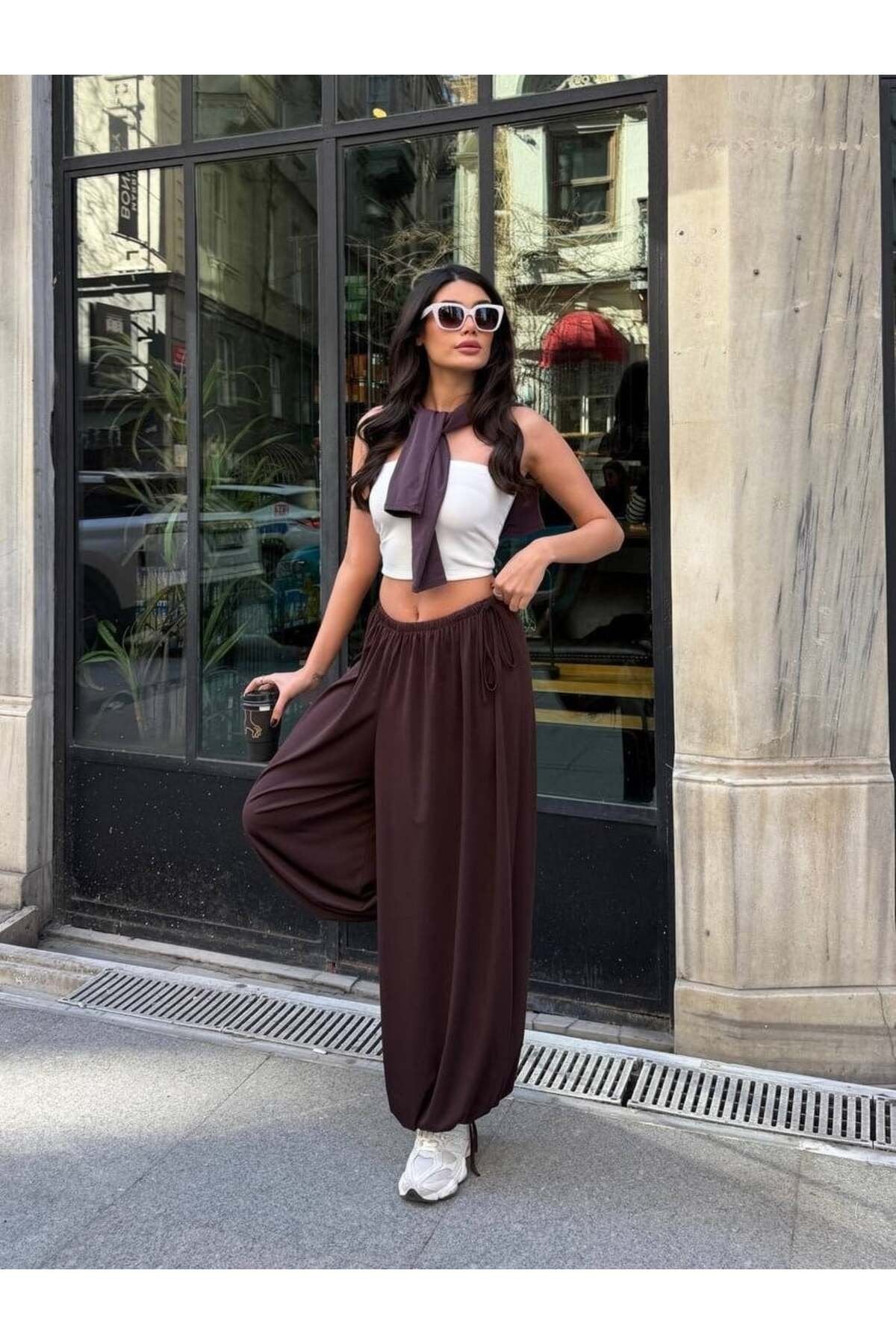 Sandy kumaşın yumuşak dokusuyla gün boyu konfor sunan bağcıklı şalvarımız, hem şık hem rahat bir görünüm için tasarlandı. Beli ayarlanabilir bağcık detayıyla her vücut tipine uyum sağlar. Günlük kullanımdan özel davetlere kadar her ortamda kolayca kombinlenebilir. Nefes alan kumaş yapısı sayesinde tüm gün ferah hissettiren bu şalvar, dolabınızın vazgeçilmezi olacak.