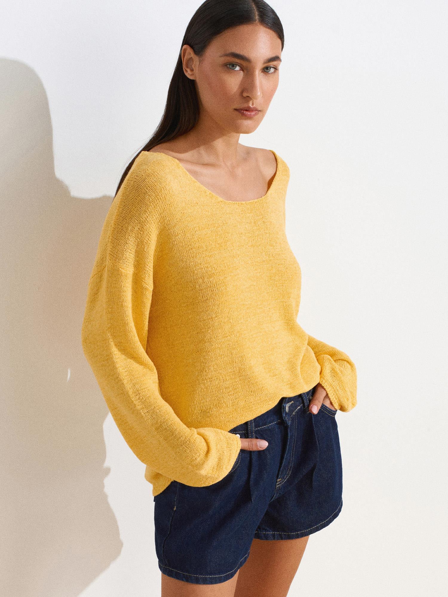 Oval Yaka Yumuşak Dokulu Triko Kazak-Sarı (10706)