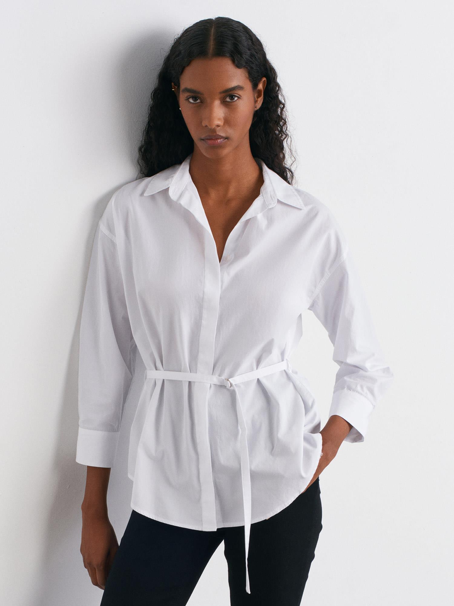 50520 Kemerli Poplin Gömlek-Beyaz