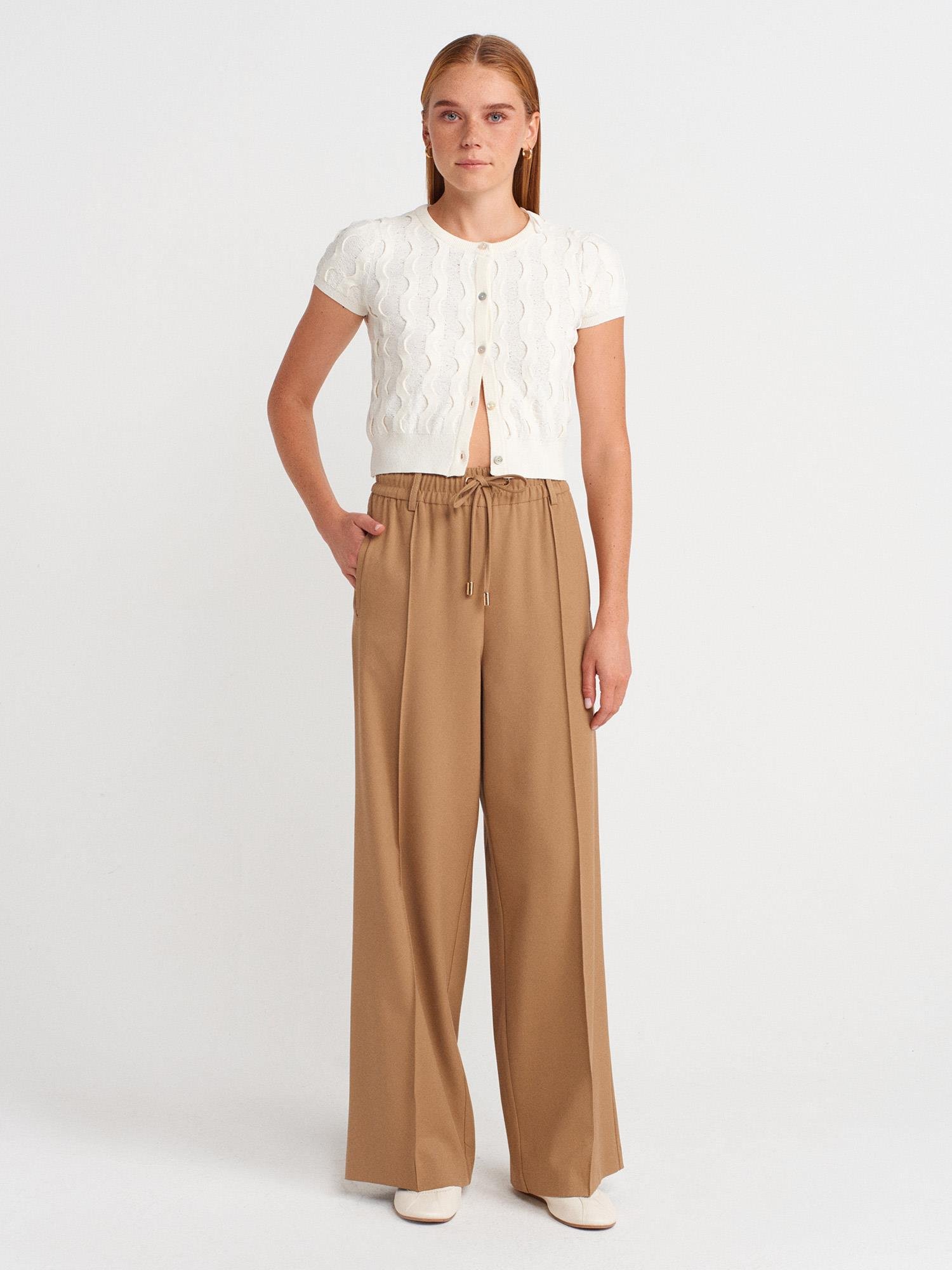72170 Geniş Paça Yumuşak Pantolon-Camel