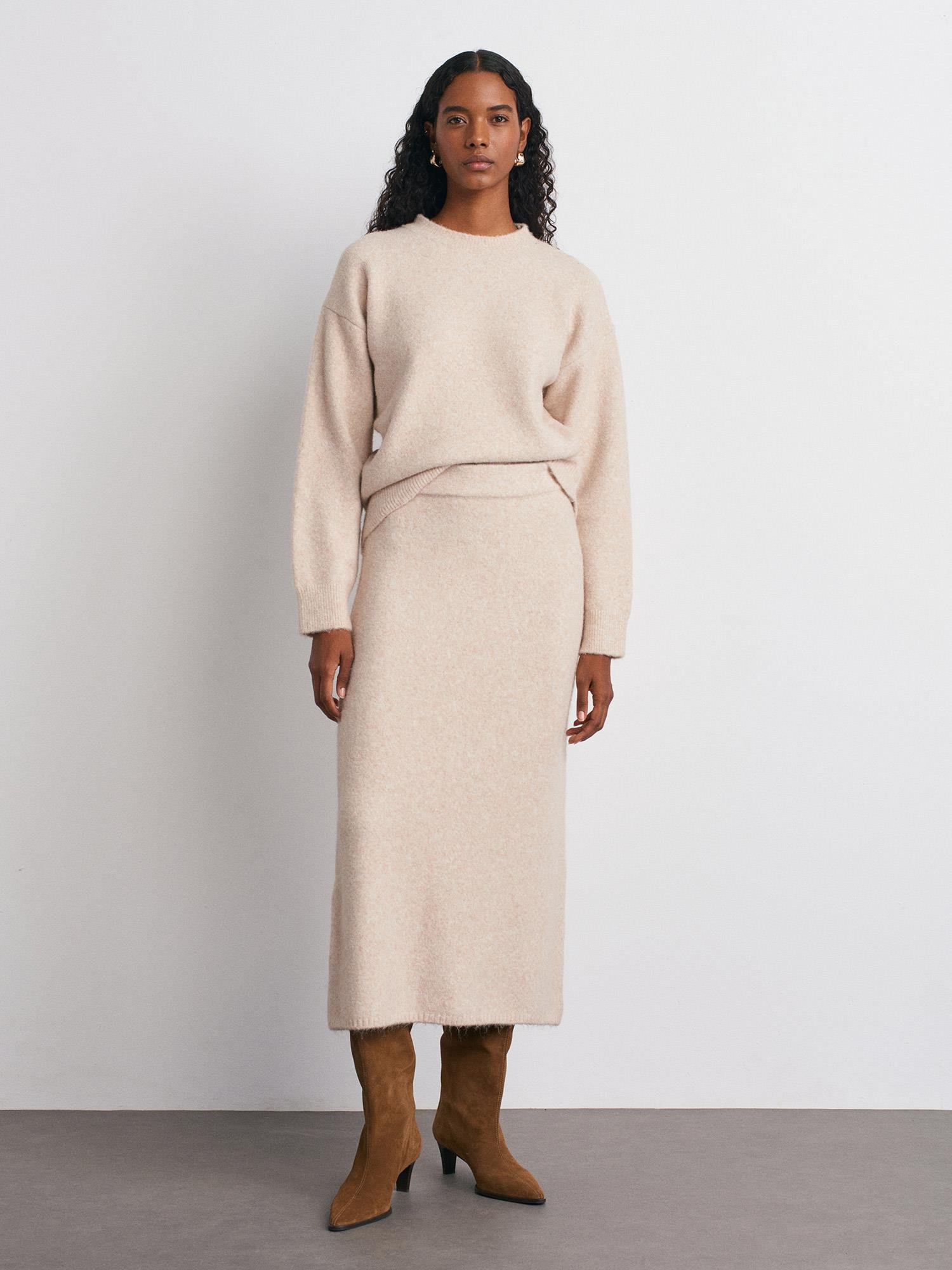 80115 Beli Lastikli Triko Etek-A.Bej Mel.