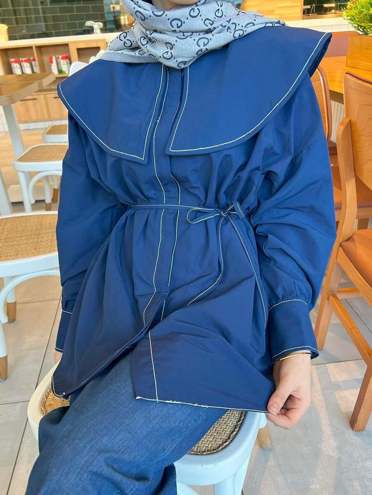 Zarif detaylarla stilinizi öne çıkarmak istiyorsanız, bu kuşaklı bebe yaka gömleği gardırobunuza mutlaka ekleyin!