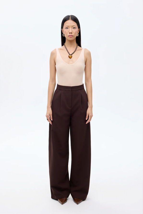 Bol Paça Kumaş Pantolon -Koyu Kahve