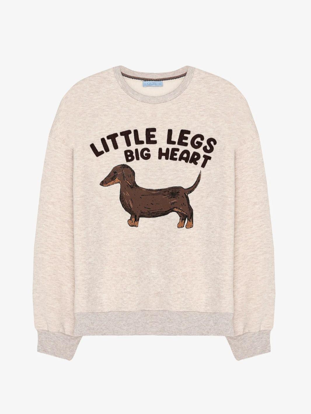 Önü köpek baskılı, yazı nakış detaylı, bisiklet yaka, uzun kollu, içi şardonlu oversize sweatshirt.